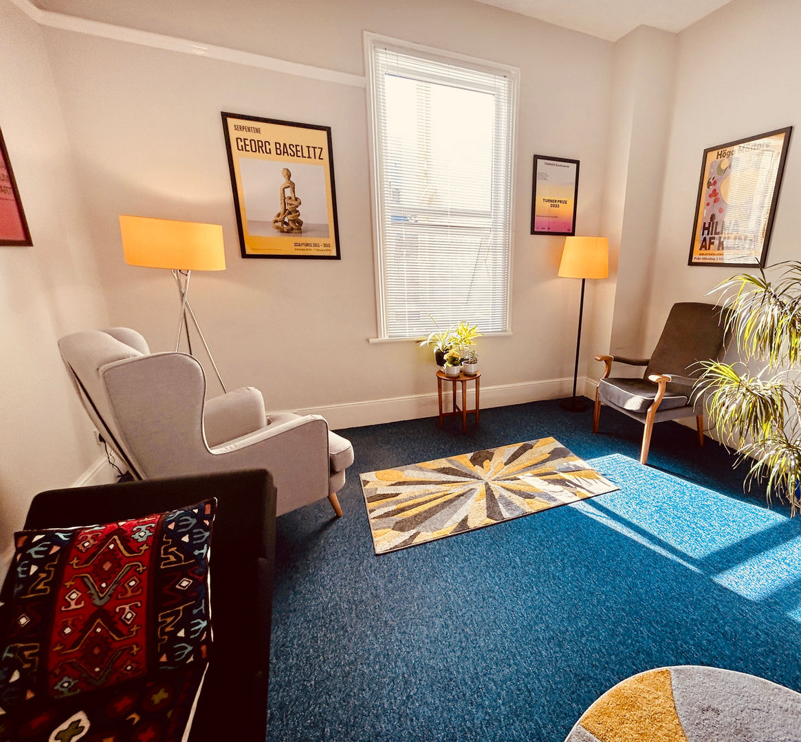 Therapy takes place in a calm, private consulting room designed to provide a safe and consistent space for young people and families.